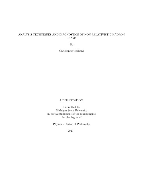 Analysis techniques and diagnostics of non-relativistic hadron beams