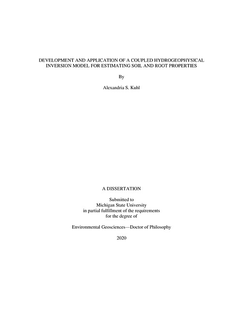 DEVELOPMENT AND APPLICATION OF A COUPLED HYDROGEOPHYSICAL INVERSION MODEL FOR ESTIMATING SOIL AND ROOT PROPERTIES