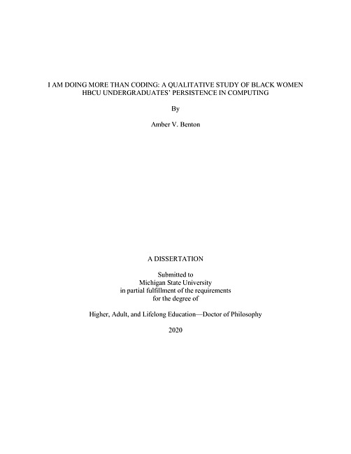 I AM DOING MORE THAN CODING : A QUALITATIVE STUDY OF BLACK WOMEN HBCU UNDERGRADUATES’ PERSISTENCE IN COMPUTING