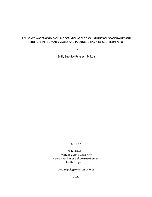A SURFACE WATER δ18O BASELINE FOR ARCHAEOLOGICAL STUDIES OF SEASONALITY AND MOBILITY IN THE MAJES VALLEY AND PUCUNCHO BASIN OF SOUTHERN PERU