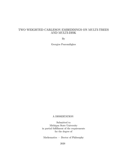 TWO WEIGHTED CARLESON EMBEDDINGS ON MULTI-TREES AND MULTI-DISK