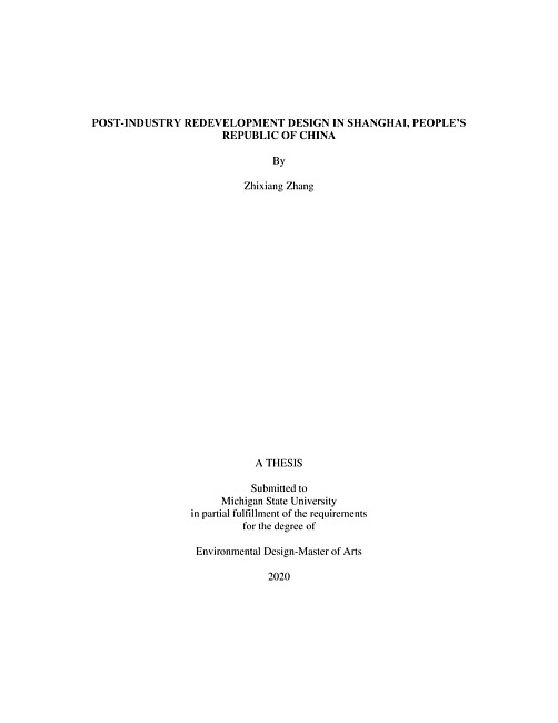 POST-INDUSTRY REDEVELOPMENT DESIGN IN SHANGHAI, PEOPLE’S REPUBLIC OF CHINA