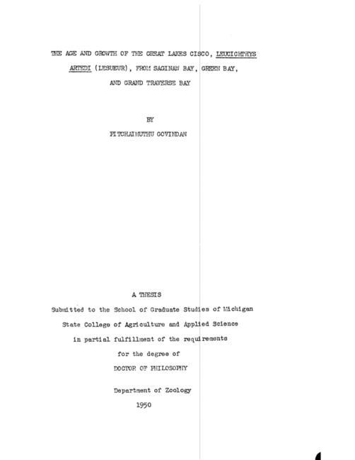 The age and growth of the Great Lakes cisco, Leucichthys artedi (Lesueur), from Saginaw Bay, Green Bay, and Grand Traverse Bay
