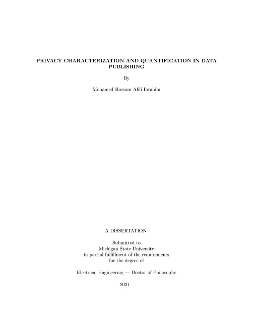 The increasing interest in collecting and publishing large amounts of individuals' data to public for purposes such as medical research, market analysis and economical measures has created major privacy concerns about their sensitive information. To deal with these concerns, many Privacy-Preserving Data Publishing (PPDP) schemes have been proposed in literature. However, they lack a proper privacy characterization. As a result, the existing schemes fail to provide reliable privacy loss quantification metrics and thus fail to correctly model the utility-privacy tradeoff. In this thesis, we first present a novel multi-variable privacy characterization model. Based on this model, we are able to analyze the prior and posterior adversarial beliefs about attribute values of individuals. Then we show that privacy should not be measured based on one metric. We demonstrate how this could result in privacy misjudgment. We propose two different metrics for quantification of privacy loss. Using these metrics and the proposed framework, we evaluate some of the most well-known PPDP techniques. The proposed metrics and data publishing framework are then used to build a negotiation-based data disclosure model to jointly address the utility requirements of the Data User (DU) and the privacy and, possibly, the monetary requirements of the Data Owner (DO). The data utility is re-defined based on the DU's rather than the DO's perspective. Based on the proposed model, we present two data disclosure scenarios that satisfy a given privacy constraint while achieving the DU's required data utility level. The variation in a DO's flat or variable monetary rate objective motivates the data disclosure scenarios. This model fills the gap between the existing theoretical work and the ultimate goal of practicality.The data publisher is required to provide guarantees that users' records cannot be de-identified from datasets. This reflects directly on the levels of data generalization and techniques by which data is anonymized. While Machine Learning (ML), one of the most revolutionary technologies nowadays, relies mainly on data, it is unfortunate that the more generalized the data is, the less accurate the ML model becomes. Although this is a well understood fact, we lack a model that quantifies such degradation in ML models' accuracy, as a consequence to the privacy constraints. To model this tradeoff, we provide the first framework to quantify, not only the privacy losses in data publishing, but also the utility losses in machine learning applications as a result of meeting the privacy constraints. To further expand our research and reflect its applicability to real industry applications, the proposed tradeoff management framework is then applied on a large-scale employee dataset from Barracuda Networks, a leader cybersecurity company. A privacy-preserving Account Takeover (ATO) detection algorithm is then proposed to predict the fraudulence of email account logins and thus detect possible ATO attacks. The results express variations in models' accuracy in binary classification of logins when trained on different datasets that satisfy different privacy constraints. The proposed framework enables a data owner to quantitatively manage the utility-privacy tradeoff and provide deeper insights about the value of the released data as well as the potential privacy losses upon publishing.