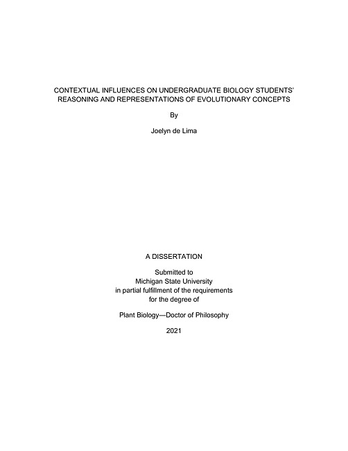 Context is the background or the settings of an event or idea. It is only when events or ideas are considered within the context in which they occur that they can be fully understood. In education, the application of knowledge communicated in one context to a different one is a central feature of learning. However, knowledge transfer can be affected by multiple factors including contexts used. Context plays a vital role in both shaping students’ learning and in eliciting their knowledge. Therefore, understanding how context can help or hinder learning and how context impacts knowledge assessment is important for improving science learning outcomes.For my dissertation, I studied contextual influences on the ways students reason and represent their knowledge. My studies explored two types of contexts: surface features of prompts provided to students (e.g., organism used) and the mode of response requested (e.g., written narratives vs constructed models). I analysed the effect of prompt surface features on the content of students’ written responses and on the architecture of models they constructed to explain evolution by natural selection. I also analysed the effect of mode on the content and level of scientific plausibility of students’ responses. In addition, I explored the association between instruction and prior achievement and susceptibility to contextual influences.My results indicate that prompt contextual features and mode of response are eliciting differences in the content of students’ representations. Contextual susceptibility decreased with instruction and higher prior academic achievement. This could indicate that they are novice learners and have a fragile understanding of either the subject matter (evolution), the alternative representation that was required (constructing models), or of both the subject matter and the representation. Incorporating multiple contexts and modes of assessment has potential to generate a more holistic view of students’ understanding and may promote greater transfer by requiring students to think and reason across contexts.