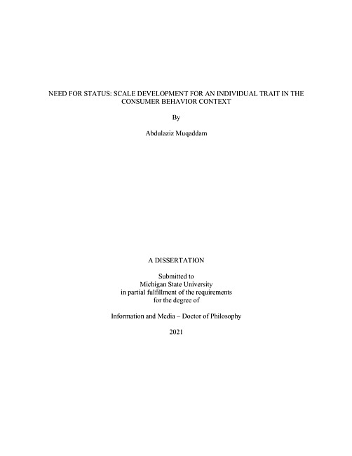 NEED FOR STATUS : SCALE DEVELOPMENT FOR AN INDIVIDUAL TRAIT IN THE CONSUMER BEHAVIOR CONTEXT