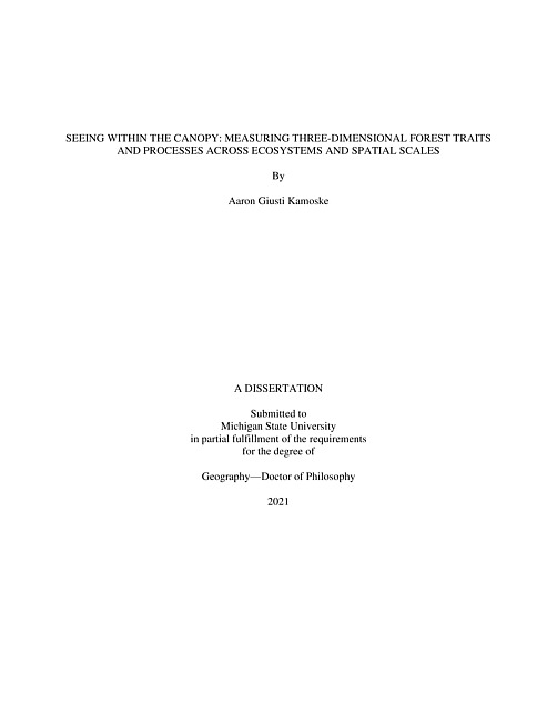 SEEING WITHIN THE CANOPY : MEASURING THREE-DIMENSIONAL FOREST TRAITS AND PROCESSES ACROSS ECOSYSTEMS AND SPATIAL SCALES