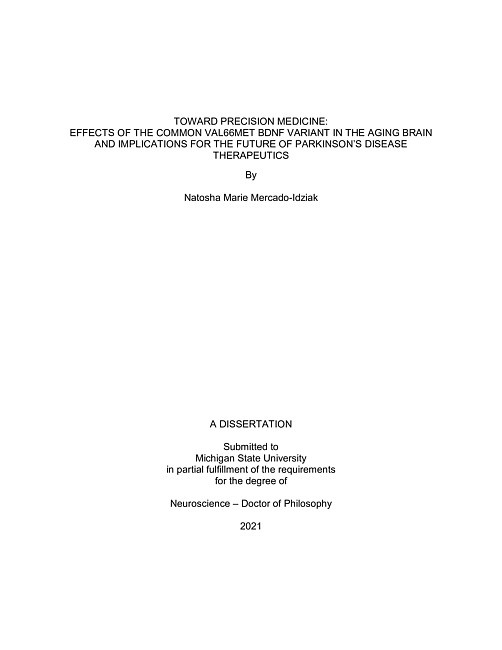 TOWARD PRECISION MEDICINE : EFFECTS OF THE COMMON VAL66MET BDNF VARIANT IN THE AGING BRAIN AND IMPLICATIONS FOR THE FUTURE OF PARKINSON’S DISEASE THERAPEUTICS