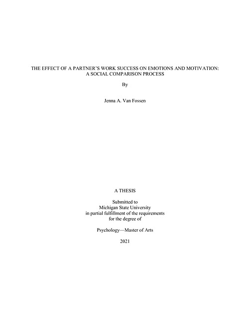 THE EFFECT OF A PARTNER’S WORK SUCCESS ON EMOTIONS AND MOTIVATION : A SOCIAL COMPARISON PROCESS