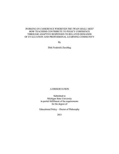 Working on Coherence Wherever the Twain Shall Meet How Teachers Contribute to Policy Coherence Through Adaptive Responses To Related Demands of Evaluation and Professional Learning Community