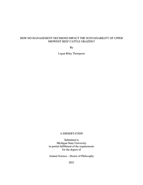 HOW DO MANAGEMENT DECISIONS IMPACT THE SUSTAINABILITY OF UPPER MIDWEST BEEF CATTLE GRAZING?