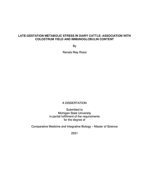LATE-GESTATION METABOLIC STRESS IN DAIRY CATTLE : ASSOCIATION WITH COLOSTRUM YIELD AND IMMUNOGLOBULIN CONTENT