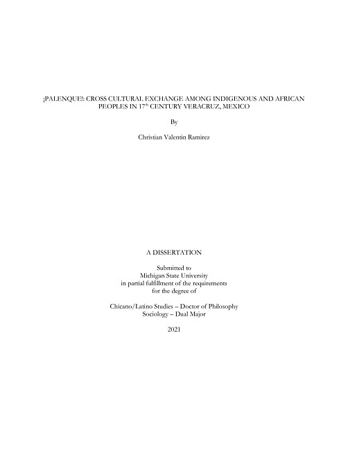 With the arrival of 16th century Spanish migrants to the Americas came new geopolitical identities, racial and cultural hierarchies, and the transformation of social relationships between and among Indigenous communities in Mesoamerica. The Spanish were accompanied by both free and enslaved Africans who transformed the social, cultural, and racial structures of what would later become New Spain. In the context of this historical reality, this dissertation will explore two Afro-Indigenous palenques, or self-liberated settlements, by the names of San Lorenzo de los Negros (Yanga) and Nuestra Señora de Guadalupe de los Morenos de Amapa (Mandinga), using a case study approach that combines analysis of primary archival data and secondary literary sources. By exploring self-liberated communities, I will reconstruct a narrative about Afro-Indigenous alliances and their multiple forms of collective resistance against their colonial conditions. The goal is to historicize the African presence as they coalesced with the Indigenous world in New Spain. Additionally, my goal is to demonstrate how European modernity was a key operating ideology in the assignment of their racial/ethnic identities.This dissertation examines the following: 1) investigates and trace the historical processes that made colonial Veracruz a location of cross-cultural exchange; 2) to examines how two distinct colonized groups adapted themselves to their new social relations initiated by Spanish colonialism in order to form their respective palenques; 3) explore how the Spanish racialization project reorganized the racial/ethnic identities of its’ subjects for colonial stability. Overall, this dissertation addresses the literary gap in Sociology and Chicano/Latino Studies concerning the social processes that created the need for palenques during the colonial Mexican era.