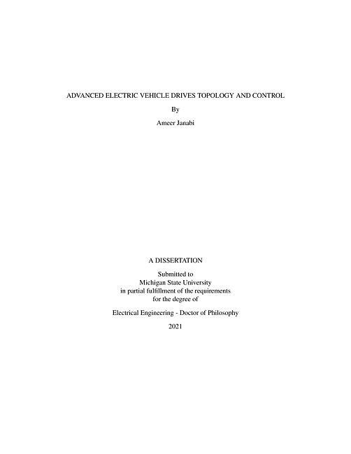 Advanced Electric Vehicle Drives Topology and Control