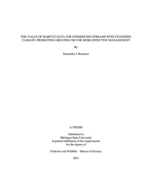 THE VALUE OF HABITAT DATA FOR CONSERVING STREAMS WITH CHANGING CLIMATE : PROMOTING GREATER USE FOR MORE EFFECTIVE MANAGEMENT