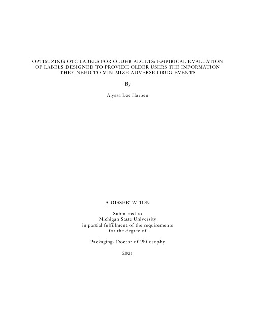 OPTIMIZING OTC LABELS FOR OLDER ADULTS : EMPIRICAL EVALUATION OF LABELS DESIGNED TO PROVIDE OLDER USERS THE INFORMATION THEY NEED TO MINIMIZE ADVERSE DRUG EVENTS