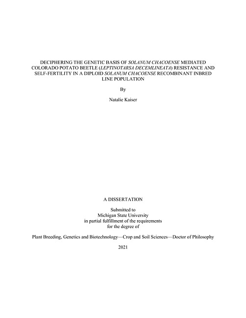 DECIPHERING THE GENETIC BASIS OF SOLANUM CHACOENSE MEDIATED COLORADO POTATO BEETLE (LEPTINOTARSA DECEMLINEATA) RESISTANCE AND SELF- FERTILITY IN A DIPLOID SOLANUM CHACOENSE RECOMBINANT INBRED LINE POPULATION