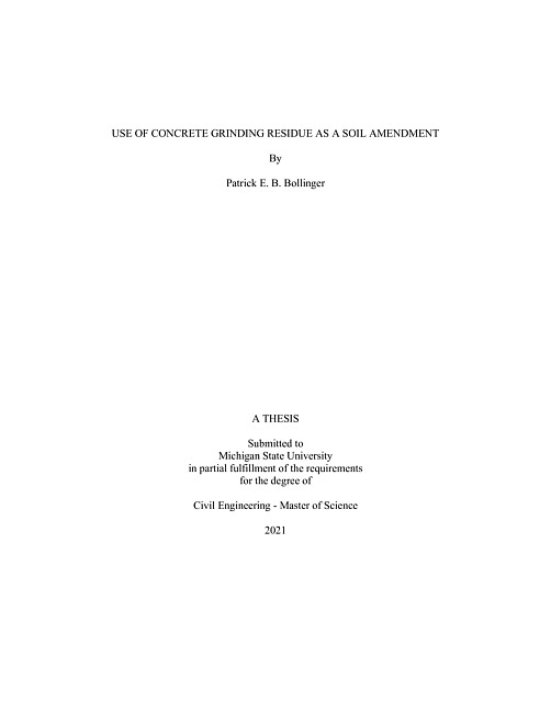 USE OF CONCRETE GRINDING RESIDUE AS A SOIL AMENDMENT