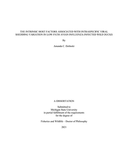 THE INTRINSIC HOST FACTORS ASSOCIATED WITH INTRASPECIFIC VIRAL SHEDDING VARIATION IN LOW-PATH AVIAN INFLUENZA-INFECTED WILD DUCKS