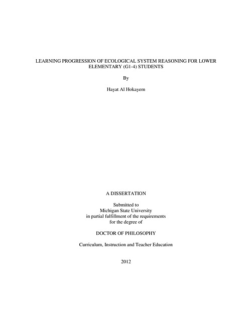 Learning progression of ecological system reasoning for lower elementary (G1-4) students