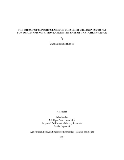 THE IMPACT OF SUPPORT CLAIMS ON CONSUMER WILLINGNESS TO PAY FOR ORIGIN AND NUTRITION LABELS : THE CASE OF TART CHERRY JUICE