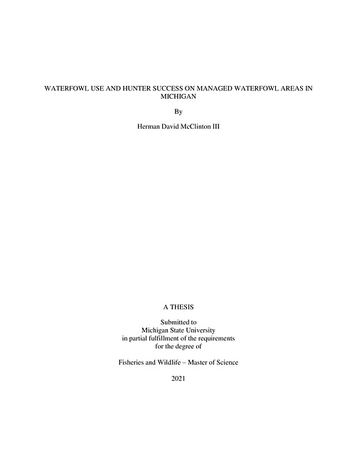 WATERFOWL USE AND HUNTER SUCCESS ON MANAGED WATERFOWL AREAS IN MICHIGAN