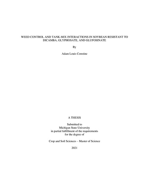 WEED CONTROL AND TANK-MIX INTERACTIONS IN SOYBEAN RESISTANT TO DICAMBA, GLYPHOSATE, AND GLUFOSINATE