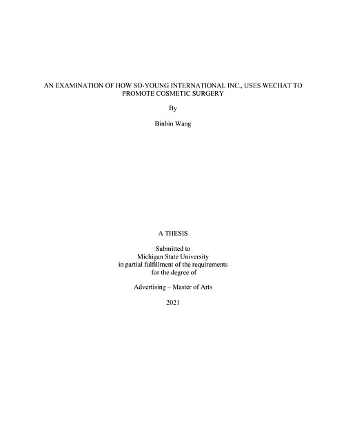 AN EXAMINATION OF HOW SO-YOUNG INTERNATIONAL INC., USES WECHAT TO PROMOTE COSMETIC SURGERY