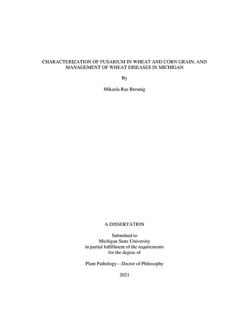 CHARACTERIZATION OF FUSARIUM IN WHEAT AND CORN GRAIN, AND MANAGEMENT OF WHEAT DISEASES IN MICHIGAN