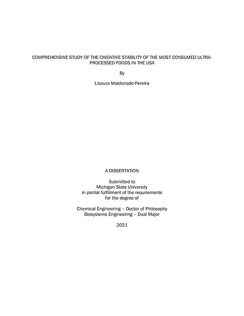 Ultra-processed foods (UPFs) are characterized for being inexpensive, highly processed, rich in calories, but low in some essential micronutrients such as minerals and vitamins. Nearly 60% of the calories consumed by the average American come from UPFs (Martínez Steele et al., 2016). Processing of food plays a crucial role in the overall chemical safety of the American diet (also known as the Western diet) since different manufacturing conditions promote the formation of unintended and harmful compounds in the final product. This is the case of cholesterol oxidation products (COPs) which have been associated with the development of several chronic diseases. COPs are derived from the oxidation of cholesterol and can be triggered by different parameters such as light, heat, radiation, metal ions, and other agents. Until this study, there has been no database of these compounds in the Western diet and their level of exposure of the US population. A total of 63 UPFs were tested. Fatty acids, cholesterols and its oxidation products, tocopherols and phytosterols were comprehensively assessed by chromatographic means. Oxidative status of the Western diet was evaluated by the quantification of secondary oxidation products such as malondialdehyde (MDA). Twelve main COPs (7α-OH, 7β-OH, 4β-OH, 5,6α-Epoxy, 5,6β- Epoxy, 7-Keto, Triol, 6-Keto, 20α-OH, 22-OH, 24-OH, and 25-OH), and other sterols (cholesterol, phytosterols, and tocopherols) were detected. An assessment of the level of exposure of COPs was performed using the Stochastic Human Exposure and Dose Simulation (SHEDS) developed by the US Environmental Protection Agency (EPA) (EPA, 2020). Forty-four percent of the samples showed a different fat content than those reported on the food item’s nutritional label. Moreover, 78% of the UPFs showed a higher cholesterol content than the reference value from their nutritional label. Twenty-six percent of fast food (FF) meals showed a high PUFA content which is a type of healthy fat that improves cardiovascular health (Harris, 2007; Lu et al., 2011), brain function, and overall health during pregnancy (Koletzko et al., 2008). Saturated fatty acid (SFA) content in UPFs was directly related to the food item’s price. β-Sitosterol was the most abundant phytosterol. However, differences in concentrations were observed depending on the food matrix and ingredients added to the food item throughout its preparation. Similarly, total COP content varied among food matrices and ingredients added. This means that food matrix, ingredients and cooking conditions employed in the product’s confection play an important role in the distribution of these sterols. Lastly, infants (6-12 months) could be exposed to upwards of 309.56 mg/kg/6 mo. (0.0031 mg/kg/6 mo.). Since there is no study addressing the effects of COPs on infants’ health, no assumption could be done to determine if it should be considered a health risk. This study provides a complete overview of the oxidative lipid status of the most popular UPFs in the Western diet as well as an assessment of the exposure level of these compounds in one of the most vulnerable groups: infants. Nutritional quality and dietary patterns seem to be jeopardized by prices and popularity of UPF meals, resulting in a public health issue that should be addressed.