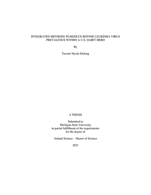 INTEGRATED METHODS TO REDUCE BOVINE LEUKEMIA VIRUS PREVALENCE WITHIN A U.S. DAIRY HERD