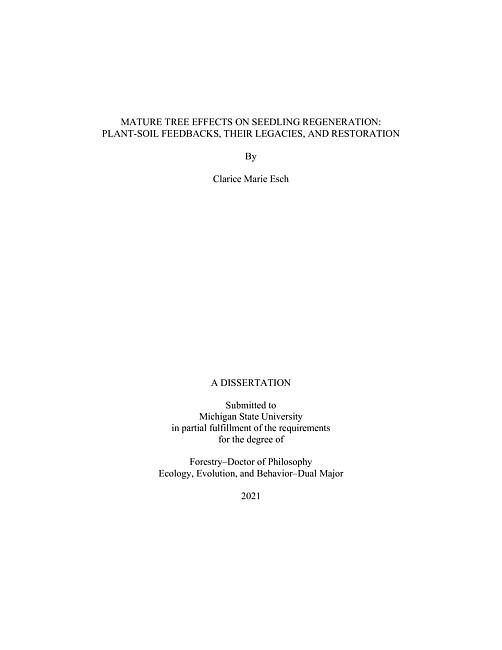 MATURE TREE EFFECTS ON SEEDLING REGENERATION : PLANT-SOIL FEEDBACKS, THEIR LEGACIES, AND RESTORATION