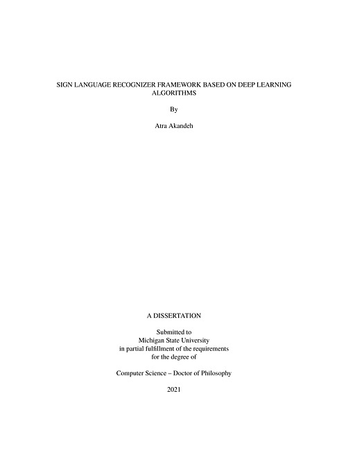 SIGN LANGUAGE RECOGNIZER FRAMEWORK BASED ON DEEP LEARNING ALGORITHMS