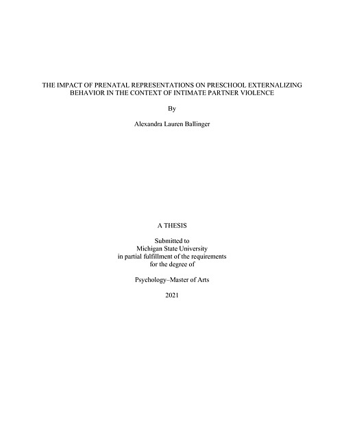 THE IMPACT OF PRENATAL REPRESENTATIONS ON PRESCHOOL EXTERNALIZING BEHAVIOR IN THE CONTEXT OF INTIMATE PARTNER VIOLENCE