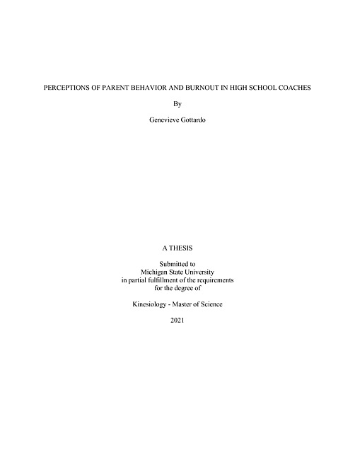 Perceptions of Parent Behavior and Burnout in High School Coaches