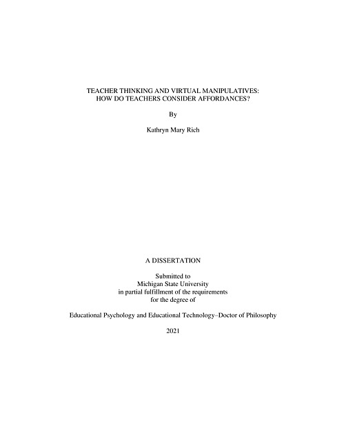 Teacher Thinking and Virtual Manipulatives : How Do Teachers Consider Affordances?