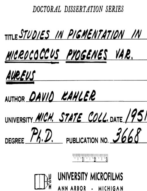 Studies in pigmentation in Micrococcus pyogenes var. Aureus