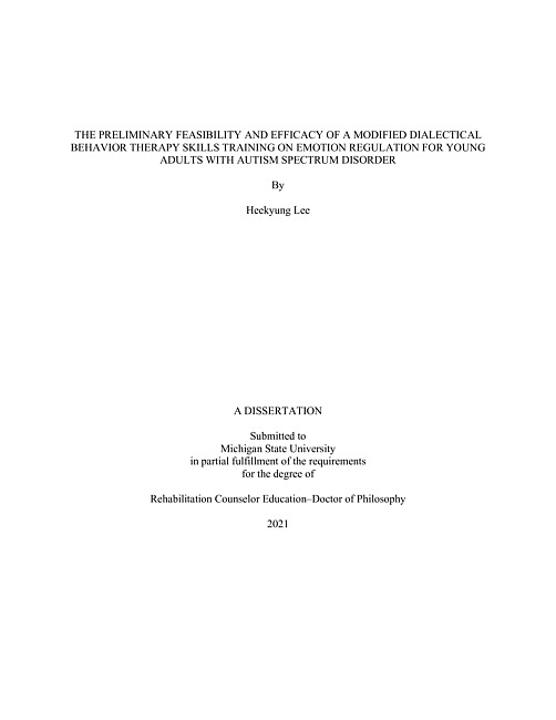 THE PRELIMINARY FEASIBILITY AND EFFICACY OF A MODIFIED DIALECTICAL BEHAVIOR THERAPY SKILLS TRAINING ON EMOTION REGULATION FOR YOUNG ADULTS WITH AUTISM SPECTRUM DISORDER