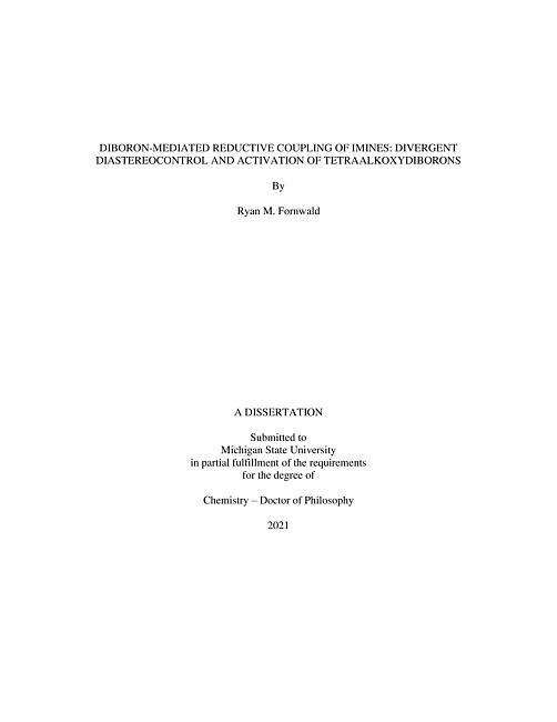 DIBORON-MEDIATED REDUCTIVE COUPLING OF IMINES : DIVERGENT DIASTEREOCONTROL AND ACTIVATION OF TETRAALKOXYDIBORONS