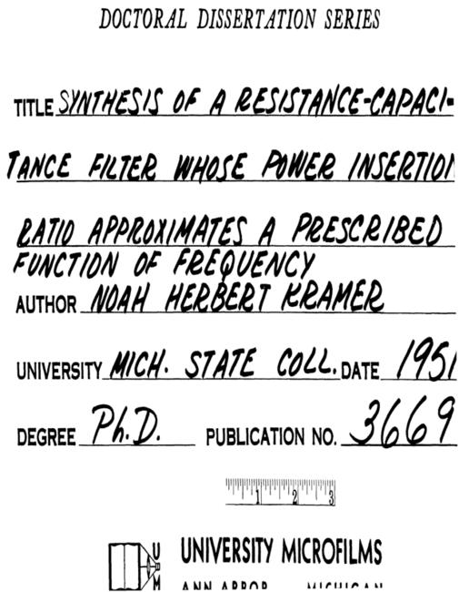 Synthesis of a resistance-capacitance filter whose power insertion ratio approximates a prescribed function of frequency