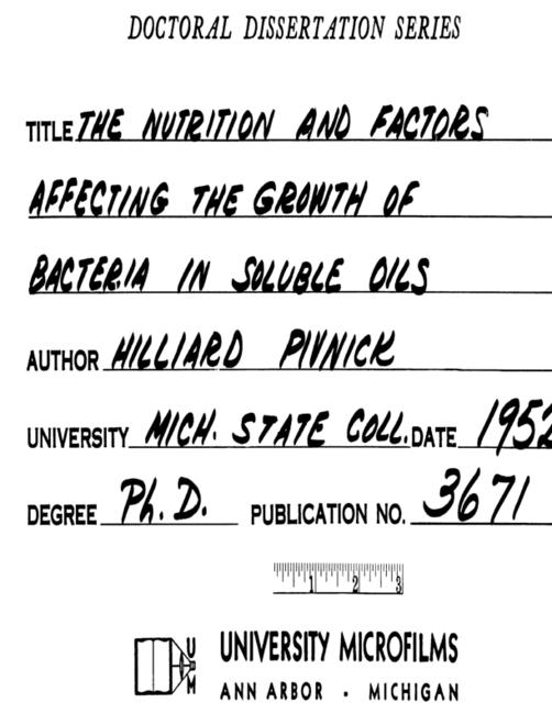 The nutrition and factors affecting the growth of bacteria in soluble oils
