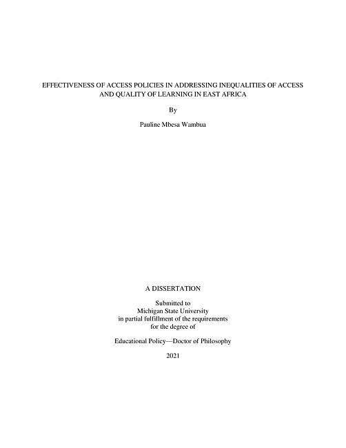 Effectiveness of access policies in addressing inequalities of access and quality of learning in east africa