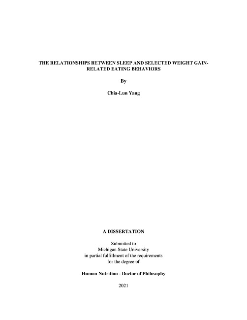 Many adults do not get enough sleep as previous studies noted that over 30% of adults in several developed countries reported less than the recommended 7 hours of sleep. Insufficient sleep increases the odds of obesity and death compared to people who have adequate sleep. Changes that promote weight gain after curtailed (shortened) sleep need to be identified. Strategies that might be able to overcome weight gain-related changes resulting from insufficient sleep should also be explored. In addition to sleep duration, a person's preferred time for activities and sleep cycle, the so-called chronotype, has been linked to certain eating behaviors which could promote weight gain. However, these relationships are poorly characterized among US adults. The overall objective of the research was to explore relationships between sleep and selected weight gain-related eating behaviors.The effects of sleep curtailment on appetite, food cravings, food reward, and portion size selection were explored in women without obesity. A total of 24 participants underwent a habitual sleep night and a curtailed sleep night, during which sleep was reduced by 33%. Participants experienced greater hunger, food cravings, and food reward after one night of curtailed sleep. Larger portion sizes were selected after curtailed sleep, which led to an increase in the amount of energy plated for lunch. These undesirable responses that followed sleep curtailment could be contributors to weight gain (chapter 2).Given that sleep curtailment led to changes in appetitive sensations and food cravings, which could lead to weight gain, it is imperative to explore possible strategies for these changes. High protein intake has been shown to provide greater satiation than other macronutrients. For this reason, chapter 3 explored the effect of a high-protein breakfast on appetitive sensations, food cravings, and dietary intake after both habitual and curtailed sleep nights. A total of 27 non-obese women underwent habitual and curtailed sleep nights followed by a high protein breakfast or a high carbohydrate breakfast. The findings demonstrated that a high protein breakfast increased fullness after participants experienced habitual sleep, but this beneficial effect disappeared after a night of curtailed sleep. Food cravings decreased after participants consumed a high protein breakfast, regardless of sleep condition. Overall, the beneficial effects of high protein breakfast mainly occurred after participants had sufficient sleep.The final chapter explored the relationships among chronotype, dietary behaviors, diet quality, and food cravings. Individuals identified as having evening-type chronotypes consumed snacks more frequently and consumed more energy-dense snacks than morning-types. However, chronotype was not related to sugar-sweetened beverage or alcohol consumption, energy and macronutrient intake, diet quality, or food cravings. The findings suggest that chronotype is negligibly related to specific behaviors associated with weight gain.In summary, the work presented revealed the effects of insufficient sleep and explored a possible strategy to address the increased appetite and food cravings after sleep curtailment in women. It also identified the relationships between chronotype and eating behaviors in adults living in the United States.