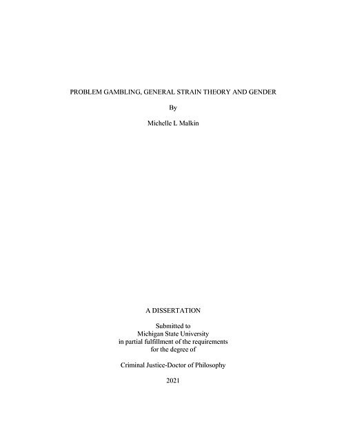 The prevalence of problem gambling has increased in the late 20th Century. Prior research has identified a host of factors that increase the likelihood that an individual will become a problem gambler, most of which would be identified by criminologists as "strains" under the framework of General Strain Theory (GST). Yet, GST has not been widely used as a possible explanation for why people become problem gamblers. In addition, there has been no examination of how gender interacts with those variables to affect problem gambling. In this dissertation, I use propositions from General Strain Theory to determine if it provides a framework for understanding why people become problem gamblers and whether gender is a moderating factor in this relationship. Secondary analysis of data collected from the Social and Economic Impacts of Gambling in Massachusetts (SEIGMA) study is analyzed to assess types of non-gambling strains, their relationship to problem gambling, and the role gender plays in this relationship. Findings demonstrate that non-gambling strains play a minor role in why people become problem gamblers. More relevant factors include having a non-substance behavioral problem and experiencing strain from a spouse/partner who is a problem gambler. Gender was found to have a strong direct effect on problem gambling (with men more likely to be problem gamblers than women), but few moderating effects were found, with one exception-men were more likely be problem gamblers than women if they experienced strain from their spouse/partner's gambling behavior.