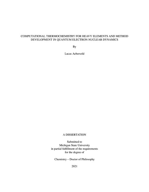 Computational thermochemistry for heavy elements and method development in quantum electron-nuclear dynamics