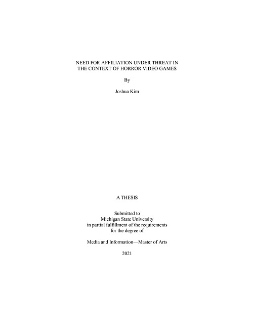 Research suggests that people favor playing violent video games cooperatively with others. However, little is known about the reason behind people's desire to play cooperatively. Previous research has demonstrated that perceived threat to the avatar can increase the need for affiliation (Velez et al., unpublished data). The current study replicates and extends previous research by using a horror game, Phasmophobia. 559 American adults above 18 who have previous experience with video games were assigned to watch one of the four video clips of horror game play, taking the role of an avatar. The current research tested the hypothesis that direct violence to the avatar will result in higher level of threat relative to the avatar being in a threatening situation. The results suggest that perceived threat to the avatar increased participants' need for affiliation. Also, participants who experienced direct violence to the avatar reported more threat than those whose avatars were in a threatening situation. Additionally, participants who thought their avatar was playing in a group reported higher levels of needs for affiliation. Finally, higher levels of need for affiliation increased participants' desire to play video games with others but it did not predict an increased desire to play alone.