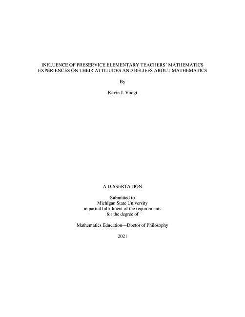 Influence of preservice elementary teachers' mathematics experiences on their attitudes and beliefs about mathematics
