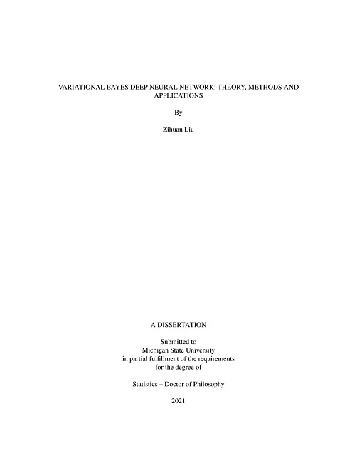 Bayesian neural networks (BNNs) have achieved state-of-the-art results in a wide range of tasks, especially in high dimensional data analysis, including image recognition, biomedical diagnosis and others. My thesis mainly focuses on high-dimensional data, including simulated data and brain images of Alzheimer's Disease. We develop variational Bayesian deep neural network (VBDNN) and Bayesian compressed neural network (BCNN) and discuss the related statistical theory and algorithmic implementations for predicting MCI-to-dementia conversion in multi-modal data from ADNI.The transition from mild cognitive impairment (MCI) to dementia is of great interest to clinical research on Alzheimer's disease (AD) and related dementias. This phenomenon also serves as a valuable data source for quantitative methodological researchers developing new approaches for classification. The development of VBDNN is motivated by an important biomedical engineering application, namely, building predictive tools for the transition from MCI to dementia. The predictors are multi-modal and may involve complex interactive relations. In Chapter 2, we numerically compare performance accuracy of logistic regression (LR) with support vector machine (SVM) in classifying MCI-to-dementia conversion. The results show that although SVM and other ML techniques are capable of relatively accurate classification, similar or higher accuracy can often be achieved by LR, mitigating SVM's necessity or value for many clinical researchers.Further, when faced with many potential features that could be used for classifying the transition, clinical researchers are often unaware of the relative value of different approaches for variable selection. Other than algorithmic feature selection techniques, manually trimming the list of potential predictor variables can also protect against over-fitting and also offers possible insight into why selected features are important to the model. We demonstrate how similar performance can be achieved using user-guided, clinically informed pre-selection versus algorithmic feature selection techniques. Besides LR and SVM, Bayesian deep neural network (BDNN) has quickly become the most popular machine learning classifier for prediction and classification with ADNI data. However, their Markov Chain Monte Carlo (MCMC) based implementation suffers from high computational cost, limiting this powerful technique in large-scale studies. Variational Bayes (VB) has emerged as a competitive alternative to overcome some of these computational issues. Although the VB is popular in machine learning, neither the computational nor the statistical properties are well understood for complex modeling such as neural networks. First, we model the VBDNN estimation methodology and characterize the prior distributions and the variational family for consistent Bayesian estimation (in Chapter 3). The thesis compares and contrasts the true posterior's consistency and contraction rates for a deep neural network-based classification and the corresponding variational posterior. Based on the complexity of the deep neural network (DNN), this thesis assesses the loss in classification accuracy due to VB's use and guidelines on the characterization of the prior distributions and the variational family. The difficulty of optimization associated with variational Bayes solution has been quantified as a function of the complexity of the DNN. Chapter 4 proposes using a BCNN that takes care of the large p small n problem by projecting the feature space onto a smaller dimensional space using a random projection matrix. In particular, for dimension reduction, we propose randomly compressed feature space instead of other popular dimension reduction techniques. We adopt a model averaging approach to pool information across multiple projections. As the main contribution, we propose the variation Bayes approach to simultaneously estimate both model weights and model-specific parameters. By avoiding using standard Monte Carlo Markov Chain and parallelizing across multiple compression, we reduce both computation and computer storage capacity dramatically with minimum loss in prediction accuracy. We provide theoretical and empirical justifications of our proposed methodology.