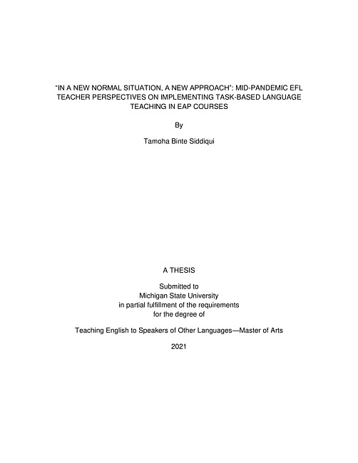 "In a new normal situation, a new approach" : mid-pandemic EFL teacher perspectives on implementing task-based language teaching in EAP courses
