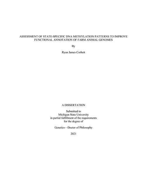 Over the past several decades, genetic advancements in the domestic pig (Sus scrofa) and other farm animal species have resulted in increased economic output and expanded use of these organisms as biomedical models to study human disease. However, limited functional annotation of the porcine genome-particularly in non-coding regulatory regions-hinders both identification of causal genes for complex traits and translational research capabilities. The Functional Annotation of Animal Genomes consortium seeks to map functional elements in domesticated animal genomes in part by performing sequencing assays to characterize the animal epigenome, as specific chromatin modifications have been shown to be predictive of regulatory regions. DNA methylation is the most ubiquitous epigenetic modification made to the DNA molecule, and in mammals occurs almost exclusively at cytosines in CpG dinucleotides. DNA methylation exerts regulatory effects through numerous mechanisms, including the occlusion of transcription factors at activating regulatory regions, and as such has been shown to play important roles in establishing spatiotemporal gene expression. Furthermore, differential methylation has been associated with genomic imprinting and stress-induced physiological changes in mammals. Assessment of DNA methylation in the pig and other farm animal species has thus far been limited in scope. In this dissertation, I have characterized state-specific DNA methylation patterns in farm animal genomes across a diverse collection of cell types, developmental stages, and environmental conditions, to enhance understanding of epigenetic gene regulation in livestock and poultry. First, I demonstrate that sorted porcine immune cells exhibit unique DNA methylation landscapes that are strongly correlated with local and distal gene expression as well as binding sites for transcription factors regulating immune cell-specific functions. The co-localization of immune cell differentially methylated regions with GWAS SNPs for immune-related traits supports the use of epigenomics assays to increase functional annotation of economically relevant genomic regions. Second, I show that development of four porcine fetal tissues (whole brain, liver, loin muscle, and placenta) is associated with increased differentiation of DNA methylation profiles that likely contributes to tissue-specific transcriptomes and transcription factor regulatory potential. I also report widespread allele-biased methylation in fetal tissues associated with breed-specific gene regulation as well as putative regions of genomic imprinting events. Third, I characterize associations between environmental stimuli and DNA methylation patterns in two studies. I show that piglet weaning correlates with changes in peripheral blood mononuclear cell DNA methylation, and that increased weaning stress is associated with increased methylation and decreased expression of T cell-enriched genes, suggesting a diminished adaptive immune response. Lastly, I assess the impact of broiler chick incubation parameters on cardiac DNA methylation and observe significant temperature-associated differential methylation of genes involved in heart morphogenesis. I identified differentially methylated and expressed genes between temperature treatments that may influence environment-driven differences in cardiovascular development. In conclusion, I have performed the most expansive survey of whole-genome DNA methylation in farm animal species to date and have identified thousands of putative regulatory elements influencing state-specific gene and phenotype expression. These data will be a valuable resource for future functional annotation efforts seeking to identify mechanistic links between genetic and phenotypic variation in animal species.